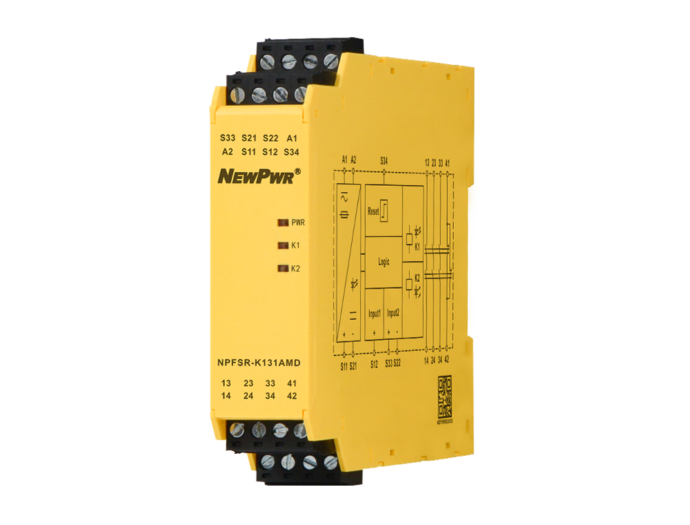 The inputs of K series E-STOP, safety gate, safety light curtain input safety relays are normally closed contact signals, which are used for emergency braking or the protection of people entering dangerous areas, and widely used in machining and other industries. Main features: 1oo2 architecture; With detection of shorts across contacts; With auto reset and manual reset function;The safety function remains effective in the case of a component failure;The correct opening and closing of the safety function relays is tested automatically in each on-off cycle.