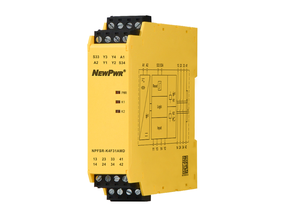 K series safety mat input safety relay is applicable to 4-wire NO contact safety mat input. When a certain weight is applied to the safety mat, the NO contact of the safety mat is closed, and the safety output contact of the control safety relay is open, so as to protect the operators in the dangerous area. Main features: 1oo2 architecture;With detection of input breakage;With auto reset and manual reset function;The safety function remains effective in the case of a component failure;The correct opening and closing of the safety function relays is tested automatically in each on-off cycle.