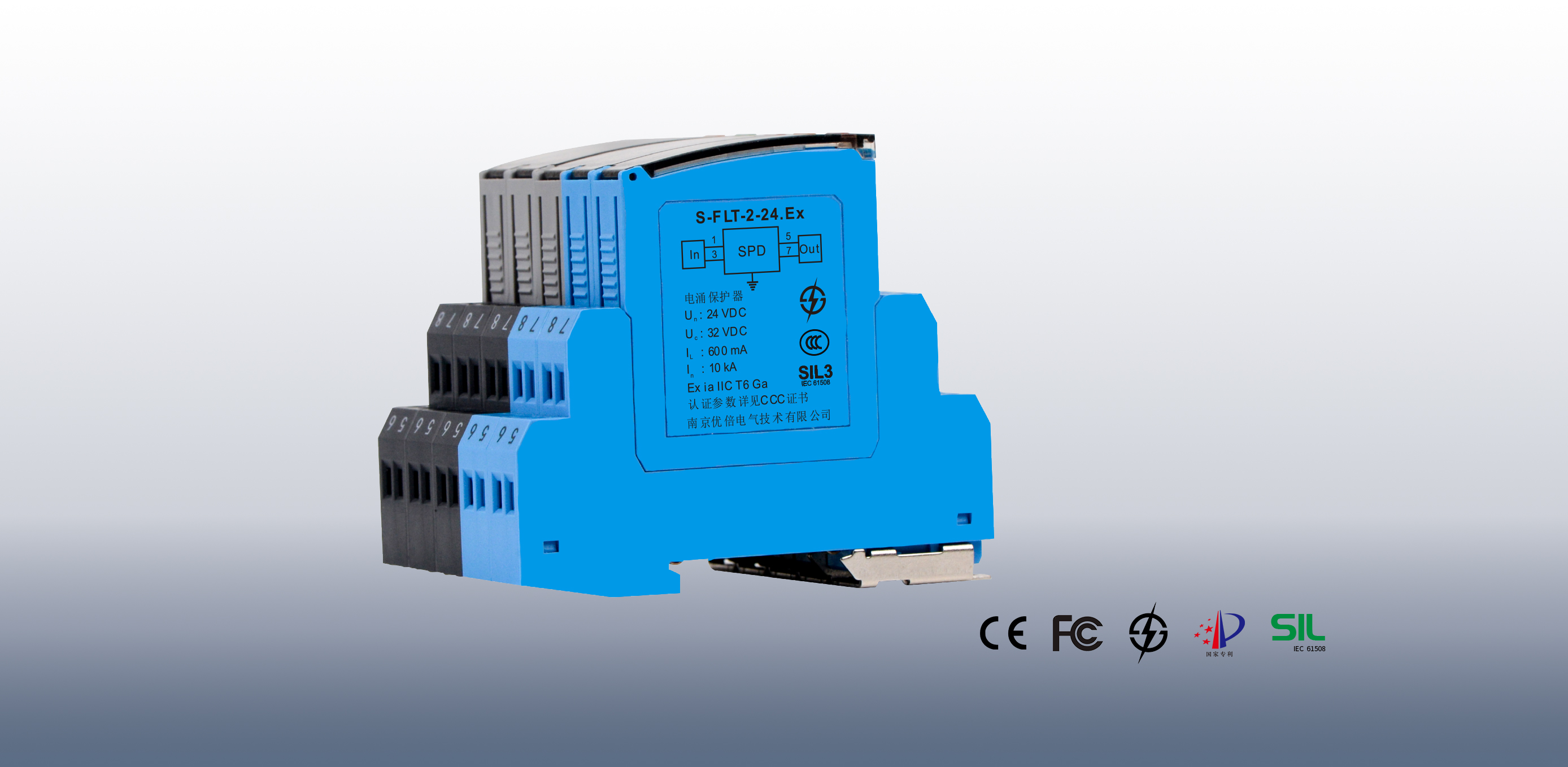 S-FLT系列電涌保護(hù)器采用抗浪涌沖擊技術(shù)、插拔不斷電技術(shù)、全包圍接地金屬結(jié)構(gòu)技術(shù)等,廣泛應(yīng)用于過(guò)程控制等領(lǐng)域,其為現(xiàn)場(chǎng)設(shè)備如變送器、熱電阻、電磁閥、流量計(jì)、閥門(mén)定位器等提供防雷保護(hù)。該系列產(chǎn)品通過(guò)功能安全SIL3、防爆Ex、安全認(rèn)證CE、防雷型式實(shí)驗(yàn)等。
