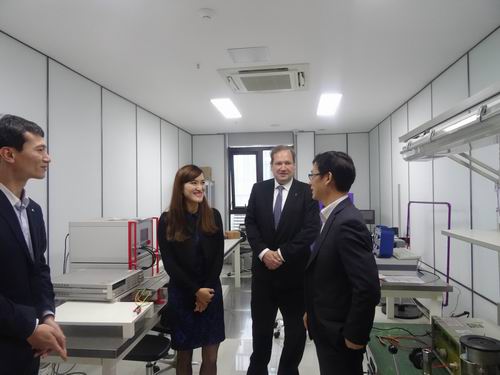 2015年11月13日,德國(guó)萊茵TUV集團(tuán)大中華區(qū)執(zhí)行副總裁陶思騰(Thorsten Keiter)先生、德國(guó)萊茵大中華區(qū)工業(yè)服務(wù)部副總經(jīng)理陳燕女士一行應(yīng)邀來(lái)到南京優(yōu)倍電氣總部,考察了優(yōu)倍電氣技術(shù)研發(fā)中心、工程研究中心、自動(dòng)化事業(yè)部、軟件部等部門(mén),并與優(yōu)倍電氣董健總經(jīng)理等公司領(lǐng)導(dǎo)就開(kāi)展國(guó)際間交流與合作充分交換了意見(jiàn)和看法,取得了令人滿意的成果。